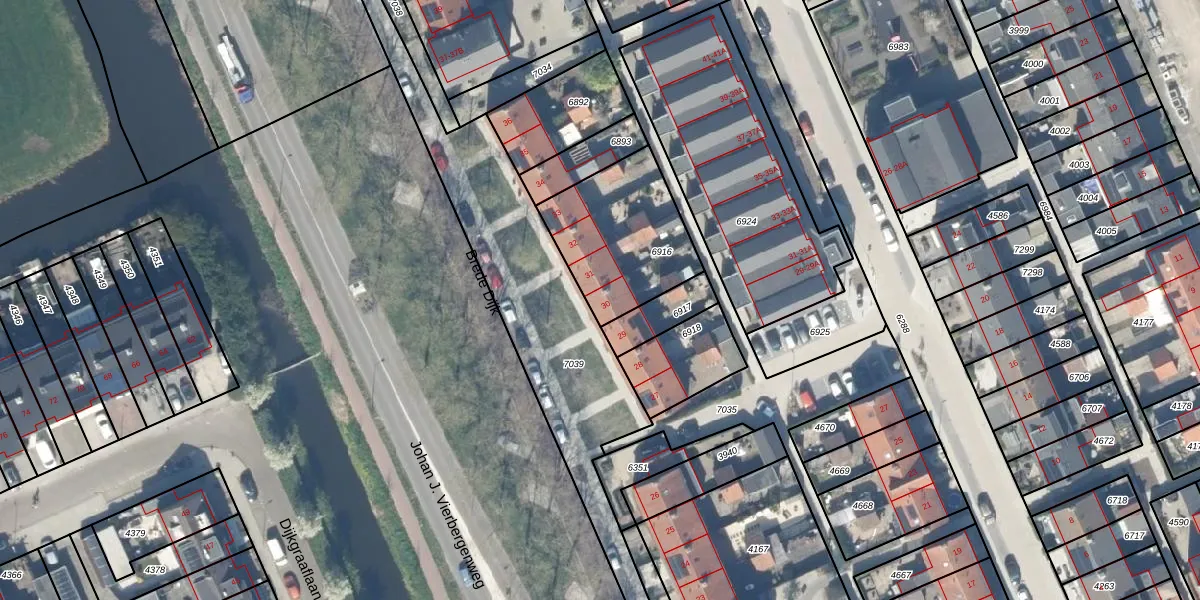 Brede Dijk 30 is gelegen op kadastraal perceel ODW00B6916. Deze kadastrale aanduiding is uniek en wordt gebruikt door het Kadaster om eigendomsrechten en andere zakelijke rechten vast te leggen. Het perceel maakt onderdeel uit van de kadastrale gemeente Oudewater.