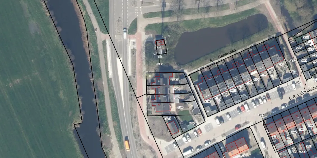 Het perceel waarop het adres ligt is ODW00-B-5351. De afkorting 'ODW00' staat voor kadastrale gemeente Oudewater. Het perceel is kleiner dan gemiddeld in Oudewater. Het perceel is 202 m² groot, terwijl het gemiddelde ligt op 3639,7 m². Het kleinste perceel in de kadastrale gemeente is 0 m² groot. De grootste perceeloppervlakte is 41,9 ha. Op het perceel bevinden zich geen andere adressen. De huidige grenzen van het perceel zijn digitaal in de Basisregistratie Kadaster (BRK) geregistreerd op 10-05-2006.