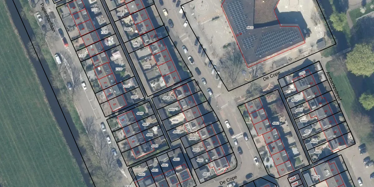 Het perceel waarop De Cope 23 staat heeft een oppervlakte van 176 m². Dit is een middelgroot perceel. De perceeloppervlakte wordt geregistreerd door het Kadaster. Gedetailleerde informatie over de maten van dit perceel kunt u vinden in het rapport Kadastrale kaart met maatvoering van De Cope 23.