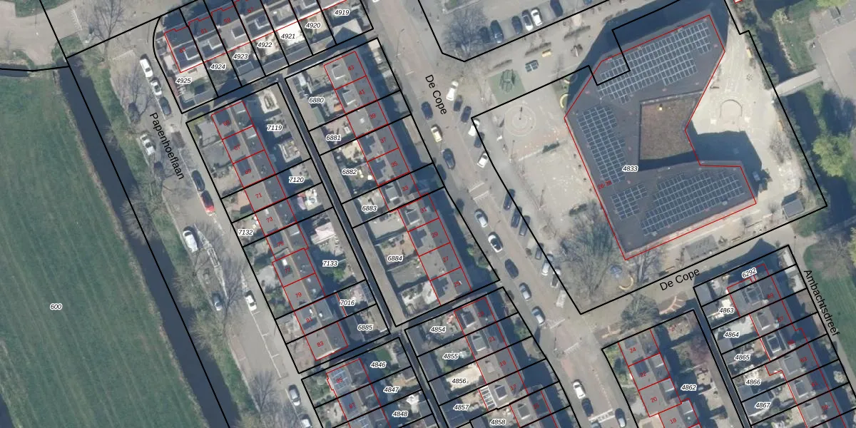 Het perceel waarop De Cope 31 staat heeft een oppervlakte van 625 m². Dit is een groot perceel. De perceeloppervlakte wordt geregistreerd door het Kadaster. Gedetailleerde informatie over de maten van dit perceel kunt u vinden in het rapport Kadastrale kaart met maatvoering van De Cope 31.