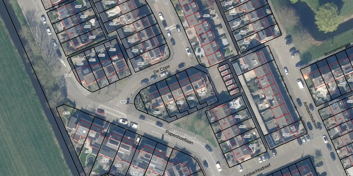 Gebruik de zoekbalk of klik op een perceel voor informatie over de adressen binnen dit perceel.