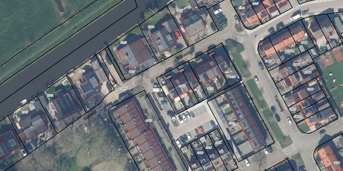 Dijkveld 15 is gelegen op kadastraal perceel ODW00A3154. Deze kadastrale aanduiding is uniek en wordt gebruikt door het Kadaster om eigendomsrechten en andere zakelijke rechten vast te leggen. Het perceel maakt onderdeel uit van de kadastrale gemeente Oudewater.