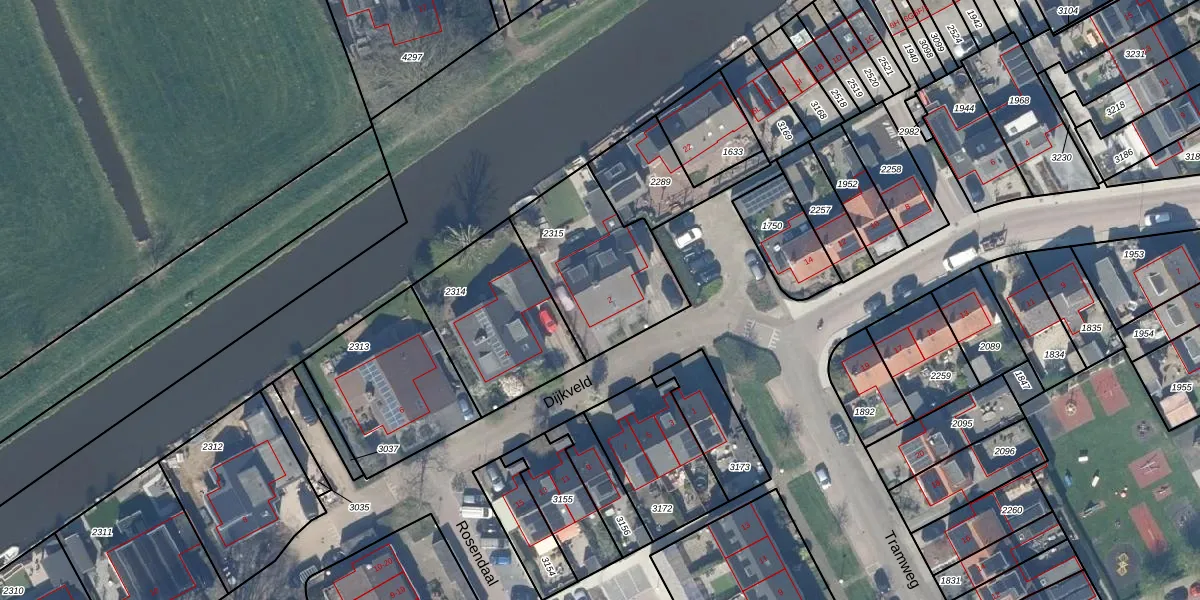 Het perceel waarop Dijkveld 2 staat heeft een oppervlakte van 505 m². Dit is een groot perceel. De perceeloppervlakte wordt geregistreerd door het Kadaster. Gedetailleerde informatie over de maten van dit perceel kunt u vinden in het rapport Kadastrale kaart met maatvoering van Dijkveld 2.