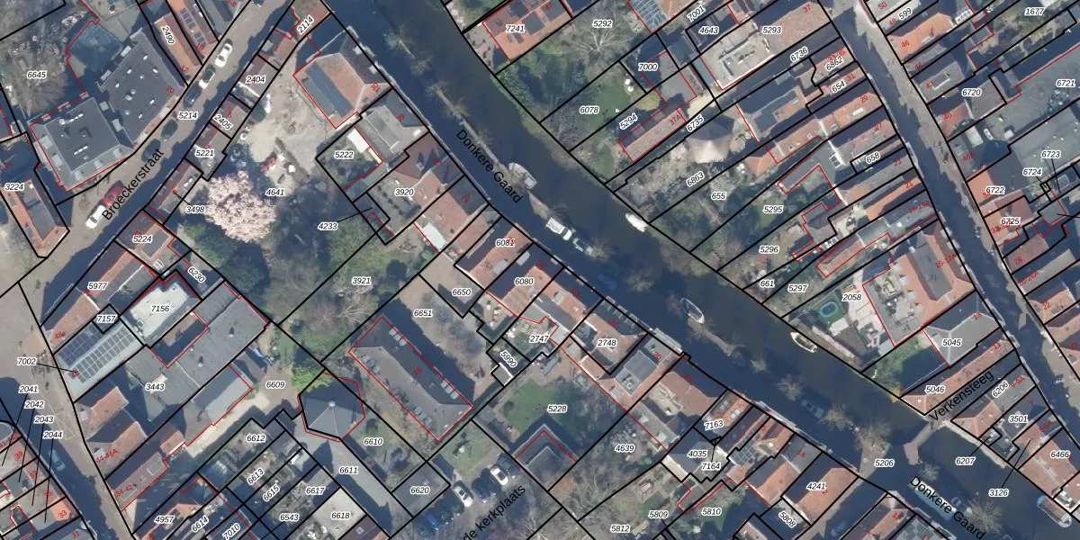Donkere Gaard 24 is gelegen op kadastraal perceel ODW00B6080. Deze kadastrale aanduiding is uniek en wordt gebruikt door het Kadaster om eigendomsrechten en andere zakelijke rechten vast te leggen. Het perceel maakt onderdeel uit van de kadastrale gemeente Oudewater.