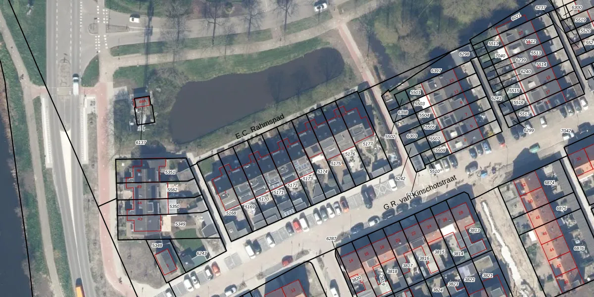 E.C. Rahmspad 6 is gelegen op kadastraal perceel ODW00B5173. Deze kadastrale aanduiding is uniek en wordt gebruikt door het Kadaster om eigendomsrechten en andere zakelijke rechten vast te leggen. Het perceel maakt onderdeel uit van de kadastrale gemeente Oudewater.