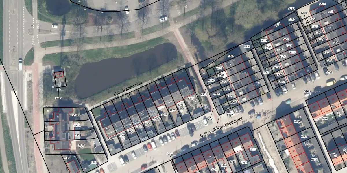 E.C. Rahmspad 9 is gelegen op kadastraal perceel ODW00B5176. Deze kadastrale aanduiding is uniek en wordt gebruikt door het Kadaster om eigendomsrechten en andere zakelijke rechten vast te leggen. Het perceel maakt onderdeel uit van de kadastrale gemeente Oudewater.