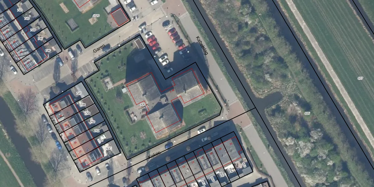 Het perceel waarop Garen 40 staat heeft een oppervlakte van 2630 m². Dit is een zeer groot perceel. De perceeloppervlakte wordt geregistreerd door het Kadaster. Gedetailleerde informatie over de maten van dit perceel kunt u vinden in het rapport Kadastrale kaart met maatvoering van Garen 40.