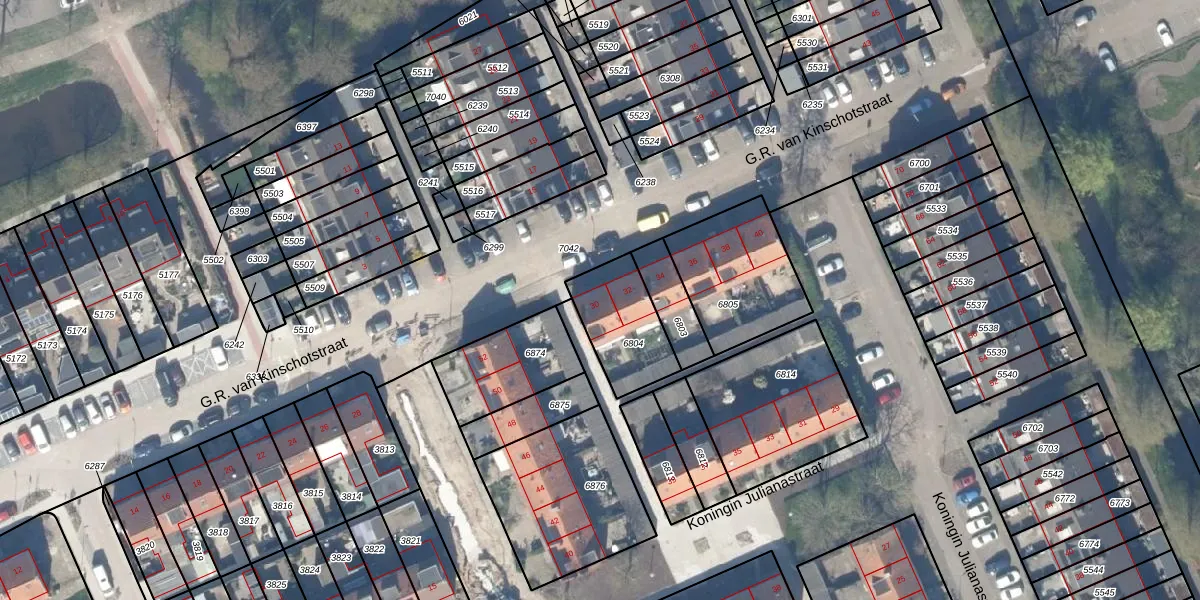 G.R. van Kinschotstraat 30 is gelegen op kadastraal perceel ODW00B6804. Deze kadastrale aanduiding is uniek en wordt gebruikt door het Kadaster om eigendomsrechten en andere zakelijke rechten vast te leggen. Het perceel maakt onderdeel uit van de kadastrale gemeente Oudewater.