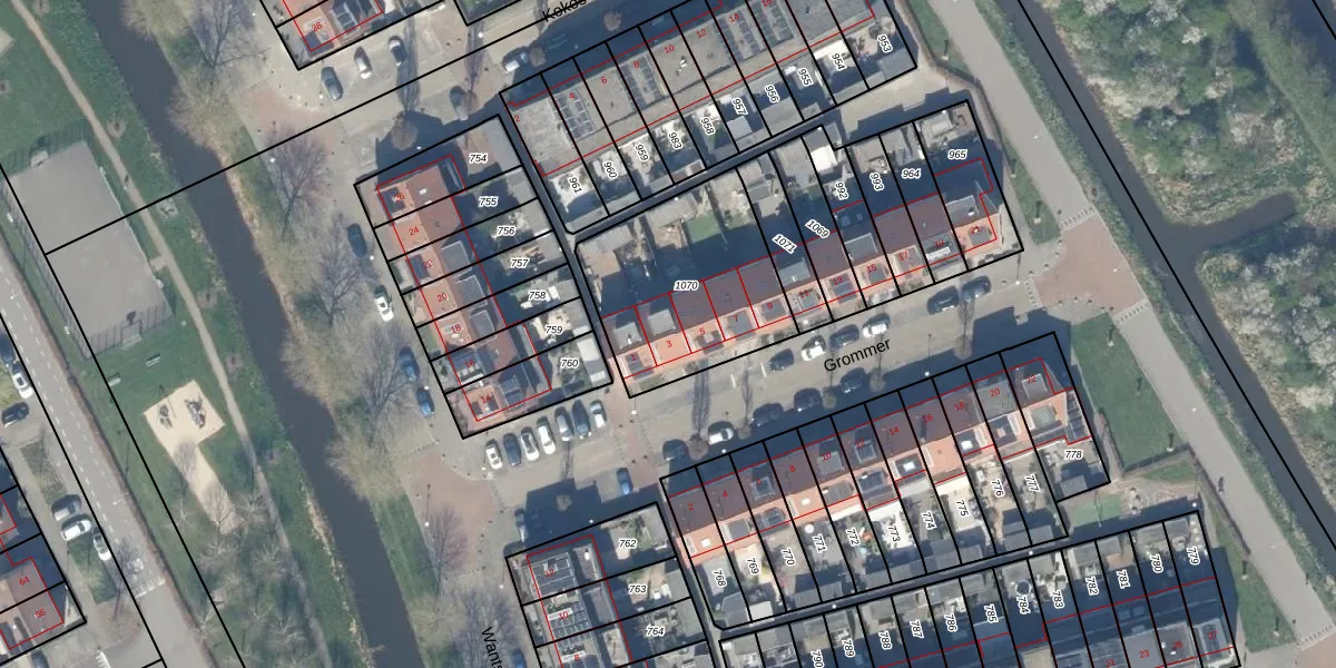 Het perceel waarop Grommer 3 staat heeft een oppervlakte van 692 m². Dit is een groot perceel. De perceeloppervlakte wordt geregistreerd door het Kadaster. Gedetailleerde informatie over de maten van dit perceel kunt u vinden in het rapport Kadastrale kaart met maatvoering van Grommer 3.