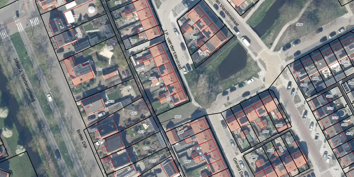 J.P. van der Leestraat 2 is gelegen op kadastraal perceel ODW00B4185. Deze kadastrale aanduiding is uniek en wordt gebruikt door het Kadaster om eigendomsrechten en andere zakelijke rechten vast te leggen. Het perceel maakt onderdeel uit van de kadastrale gemeente Oudewater.