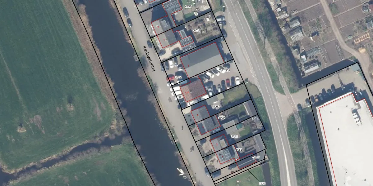 Kerkwetering 5 is gelegen op kadastraal perceel ODW00B6953. Deze kadastrale aanduiding is uniek en wordt gebruikt door het Kadaster om eigendomsrechten en andere zakelijke rechten vast te leggen. Het perceel maakt onderdeel uit van de kadastrale gemeente Oudewater.