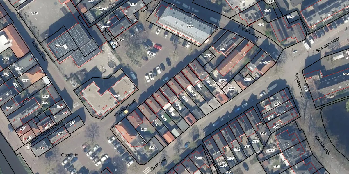 Kloosterstraat 9 is gelegen op kadastraal perceel ODW00B5389. Deze kadastrale aanduiding is uniek en wordt gebruikt door het Kadaster om eigendomsrechten en andere zakelijke rechten vast te leggen. Het perceel maakt onderdeel uit van de kadastrale gemeente Oudewater.