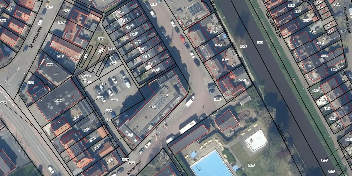 Het perceel waarop Molenwal 62 staat heeft een oppervlakte van 915 m². Dit is een groot perceel. De perceeloppervlakte wordt geregistreerd door het Kadaster. Gedetailleerde informatie over de maten van dit perceel kunt u vinden in het rapport Kadastrale kaart met maatvoering van Molenwal 62.