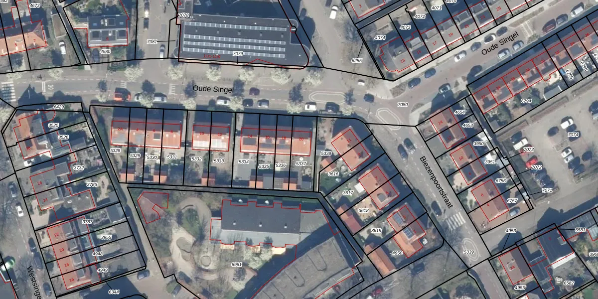 Het perceel waarop Oude Singel 20 staat heeft een oppervlakte van 202 m². Dit is een middelgroot perceel. De perceeloppervlakte wordt geregistreerd door het Kadaster. Gedetailleerde informatie over de maten van dit perceel kunt u vinden in het rapport Kadastrale kaart met maatvoering van Oude Singel 20.