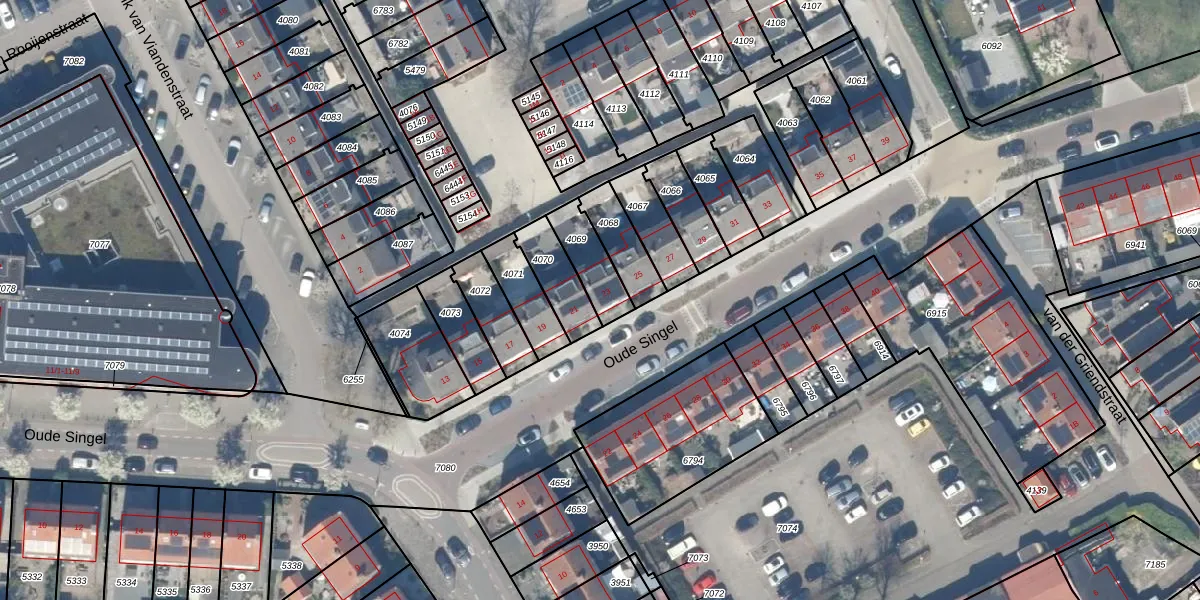 Het perceel waarop Oude Singel 23 staat heeft een oppervlakte van 126 m². Dit is een middelgroot perceel. De perceeloppervlakte wordt geregistreerd door het Kadaster. Gedetailleerde informatie over de maten van dit perceel kunt u vinden in het rapport Kadastrale kaart met maatvoering van Oude Singel 23.