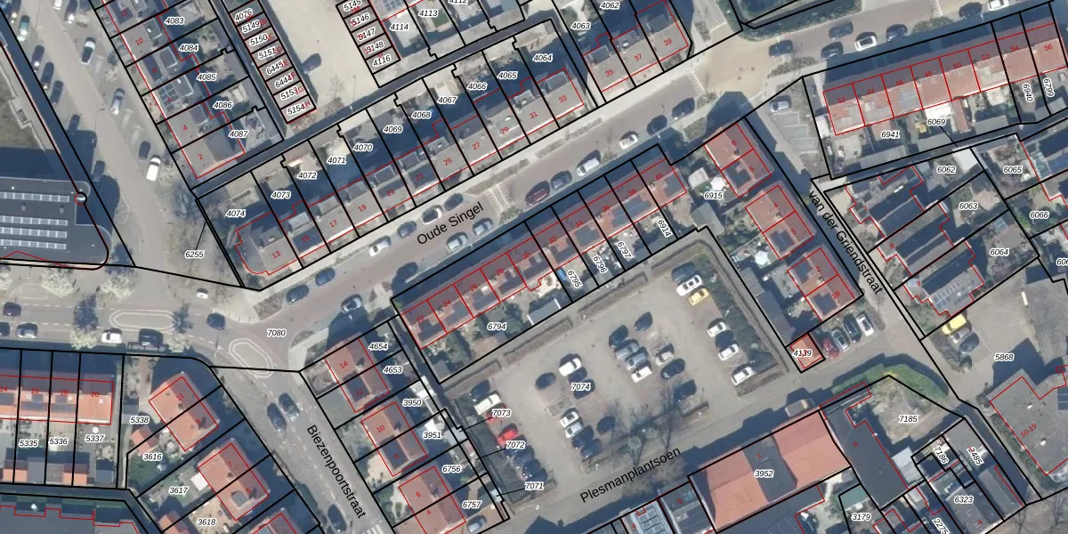 Het perceel waarop Oude Singel 30 staat heeft een oppervlakte van 515 m². Dit is een groot perceel. De perceeloppervlakte wordt geregistreerd door het Kadaster. Gedetailleerde informatie over de maten van dit perceel kunt u vinden in het rapport Kadastrale kaart met maatvoering van Oude Singel 30.