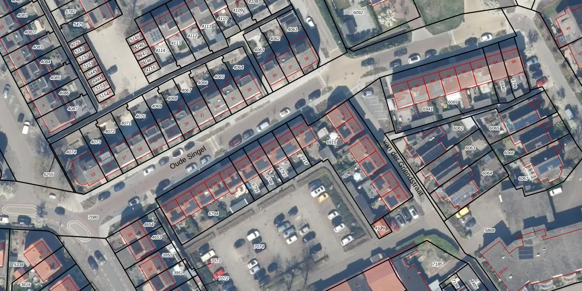 Het perceel waarop Oude Singel 38 staat heeft een oppervlakte van 100 m². Dit is een middelgroot perceel. De perceeloppervlakte wordt geregistreerd door het Kadaster. Gedetailleerde informatie over de maten van dit perceel kunt u vinden in het rapport Kadastrale kaart met maatvoering van Oude Singel 38.