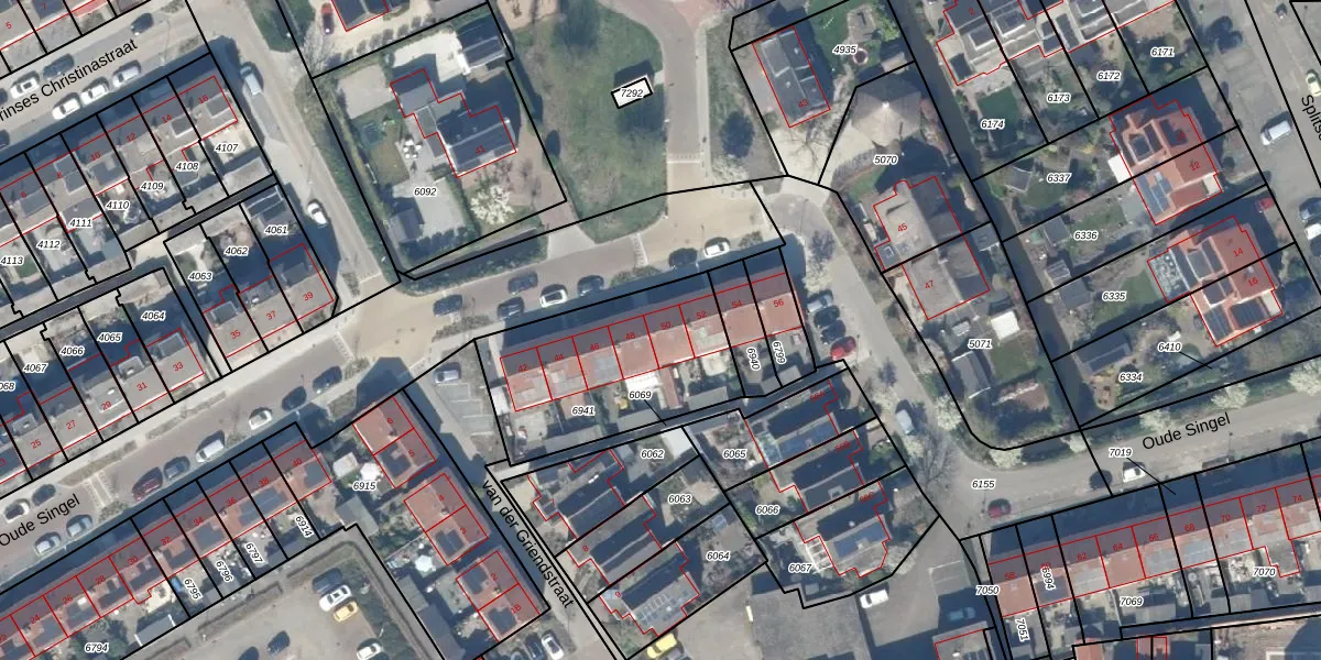 Het perceel waarop Oude Singel 50 staat heeft een oppervlakte van 727 m². Dit is een groot perceel. De perceeloppervlakte wordt geregistreerd door het Kadaster. Gedetailleerde informatie over de maten van dit perceel kunt u vinden in het rapport Kadastrale kaart met maatvoering van Oude Singel 50.