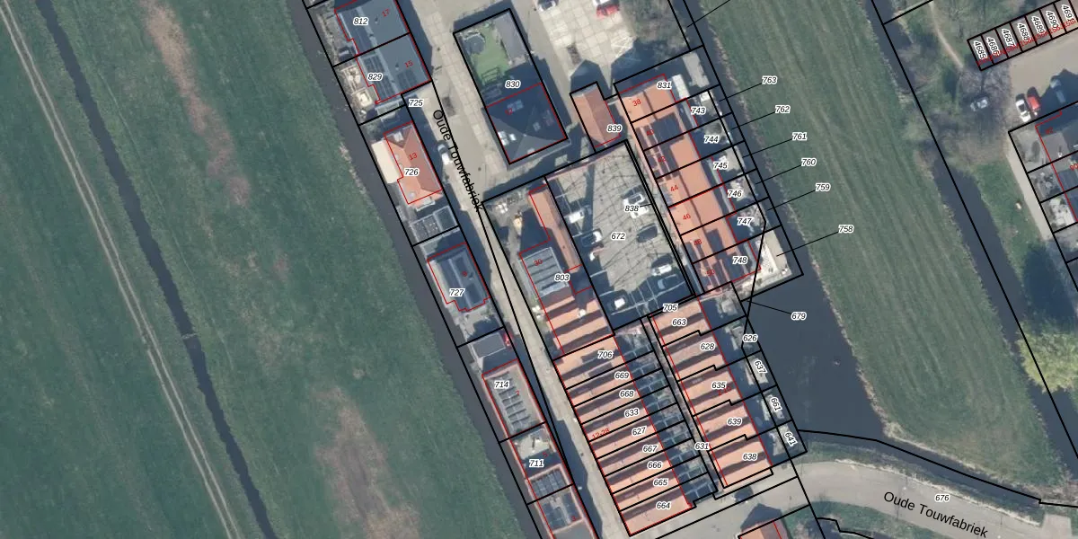 Het perceel waarop Oude Touwfabriek 30 staat heeft een oppervlakte van 404 m². Dit is een groot perceel. De perceeloppervlakte wordt geregistreerd door het Kadaster. Gedetailleerde informatie over de maten van dit perceel kunt u vinden in het rapport Kadastrale kaart met maatvoering van Oude Touwfabriek 30.