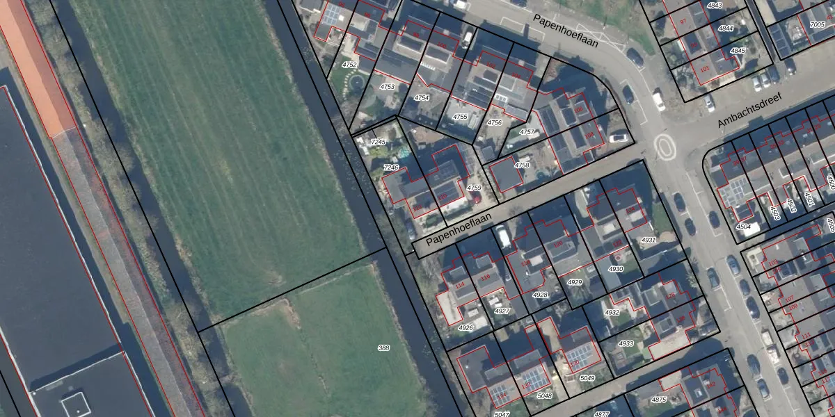 Papenhoeflaan 112 is gelegen op kadastraal perceel ODW00B7246. Deze kadastrale aanduiding is uniek en wordt gebruikt door het Kadaster om eigendomsrechten en andere zakelijke rechten vast te leggen. Het perceel maakt onderdeel uit van de kadastrale gemeente Oudewater.