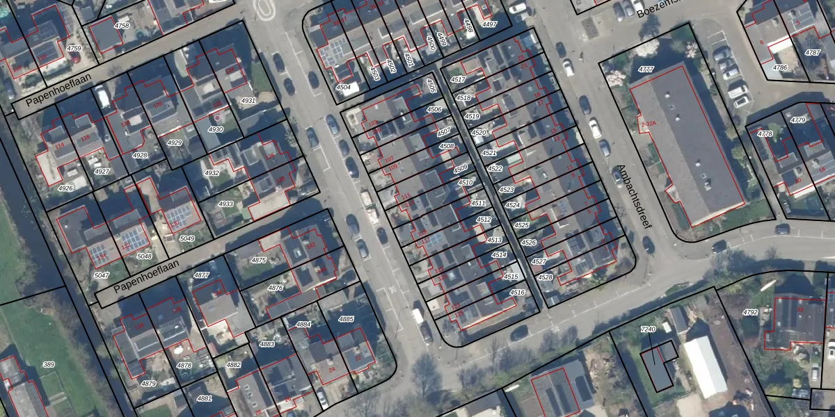 Gebruik de zoekbalk of klik op een perceel voor informatie over de adressen binnen dit perceel.