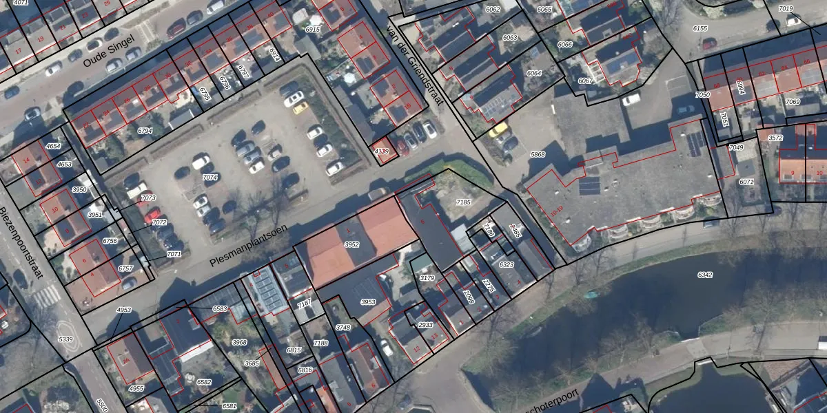 Plesmanplantsoen 8 is gelegen op kadastraal perceel ODW00B7185. Deze kadastrale aanduiding is uniek en wordt gebruikt door het Kadaster om eigendomsrechten en andere zakelijke rechten vast te leggen. Het perceel maakt onderdeel uit van de kadastrale gemeente Oudewater.