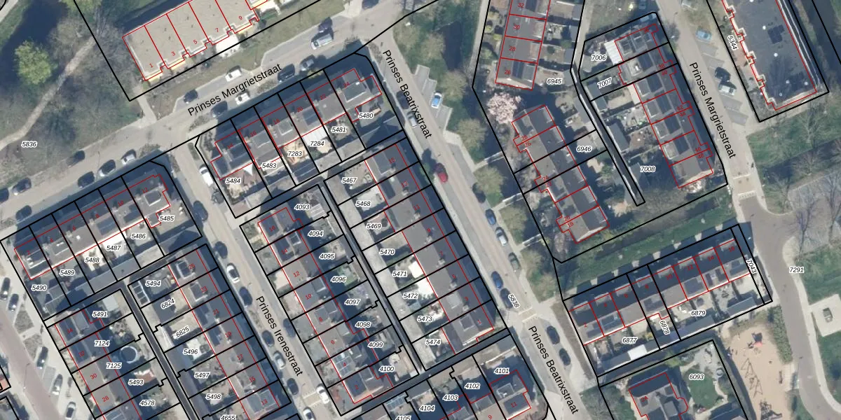 Gebruik de zoekbalk of klik op een perceel voor informatie over de adressen binnen dit perceel.