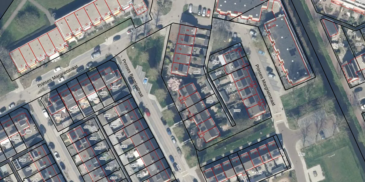 Het perceel waarop Prinses Beatrixstraat 28 staat heeft een oppervlakte van 984 m². Dit is een groot perceel. De perceeloppervlakte wordt geregistreerd door het Kadaster. Gedetailleerde informatie over de maten van dit perceel kunt u vinden in het rapport Kadastrale kaart met maatvoering van Prinses Beatrixstraat 28.