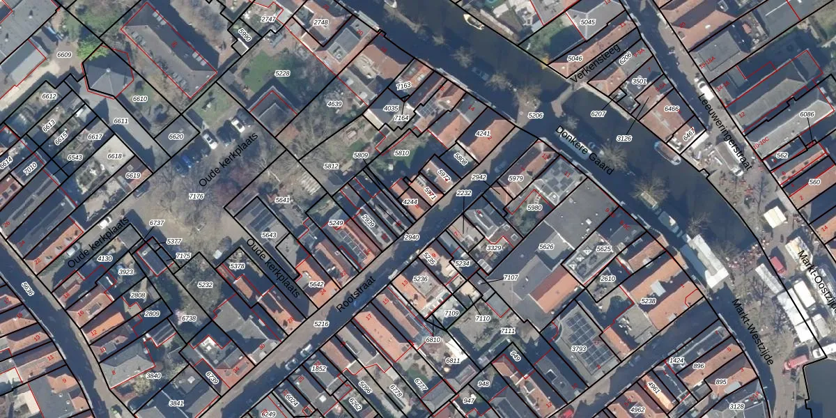 Gebruik de zoekbalk of klik op een perceel voor informatie over de adressen binnen dit perceel.
