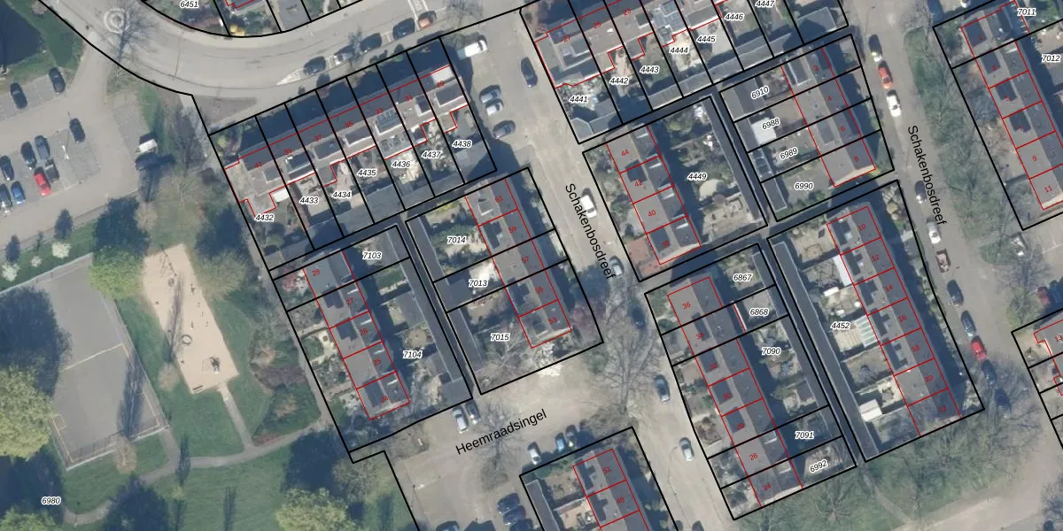 Het perceel waarop Schakenbosdreef 57 staat heeft een oppervlakte van 155 m². Dit is een middelgroot perceel. De perceeloppervlakte wordt geregistreerd door het Kadaster. Gedetailleerde informatie over de maten van dit perceel kunt u vinden in het rapport Kadastrale kaart met maatvoering van Schakenbosdreef 57.