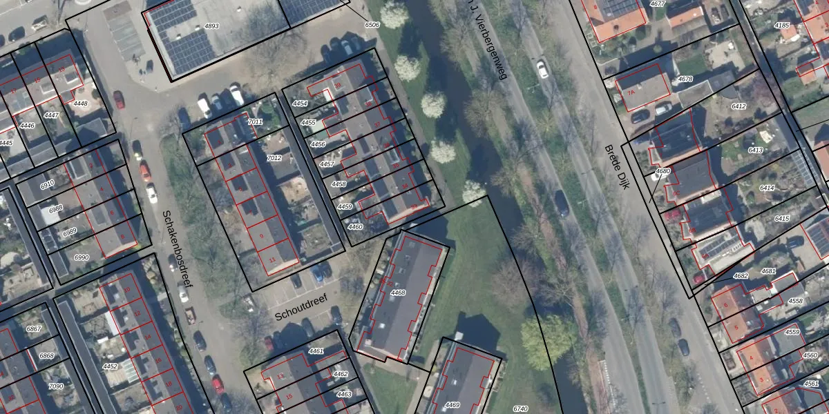 Schoutdreef 33 is gelegen op kadastraal perceel ODW00B4460. Deze kadastrale aanduiding is uniek en wordt gebruikt door het Kadaster om eigendomsrechten en andere zakelijke rechten vast te leggen. Het perceel maakt onderdeel uit van de kadastrale gemeente Oudewater.