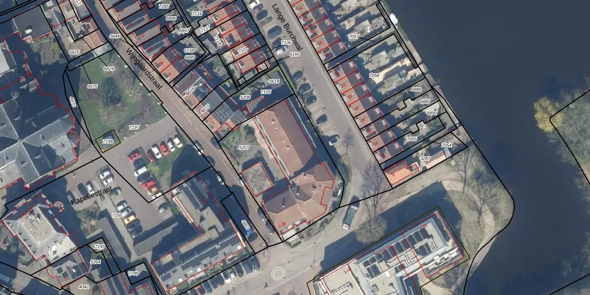 Het adres is gelegen op perceel 5207 in de sectie B en de kadastrale gemeente Oudewater. De kadastrale aanduiding is aldus ODW00-B-5207. Het perceel is 1185 m² groot. Dat is kleiner dan de gemiddelde perceeloppervlakte in Oudewater, dat op 3639,7 m² ligt. Het kleinste perceel in de kadastrale gemeente is 0 m² groot. De grootste perceeloppervlakte is 41,9 ha. Er zijn 20 adressen aanwezig op het perceel. De huidige grenzen van het perceel zijn digitaal in de Basisregistratie Kadaster (BRK) geregistreerd op 18-12-2003.