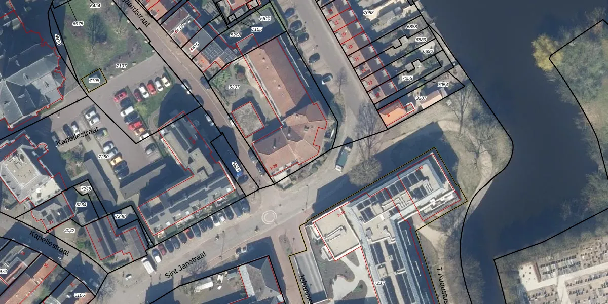 Sint Janstraat 7 is gelegen op kadastraal perceel ODW00B5207. Deze kadastrale aanduiding is uniek en wordt gebruikt door het Kadaster om eigendomsrechten en andere zakelijke rechten vast te leggen. Het perceel maakt onderdeel uit van de kadastrale gemeente Oudewater.