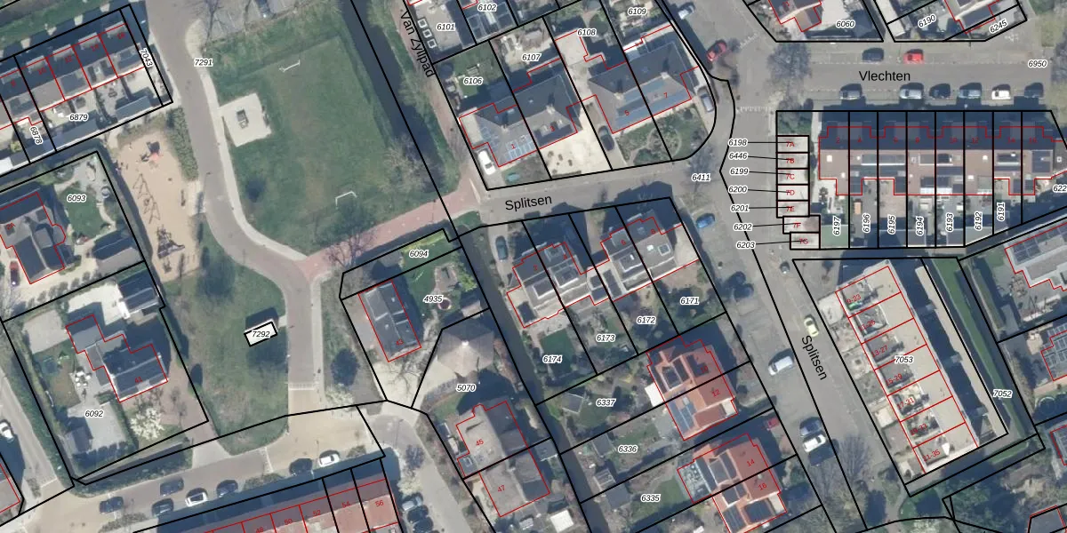 Gebruik de zoekbalk of klik op een perceel voor informatie over de adressen binnen dit perceel.