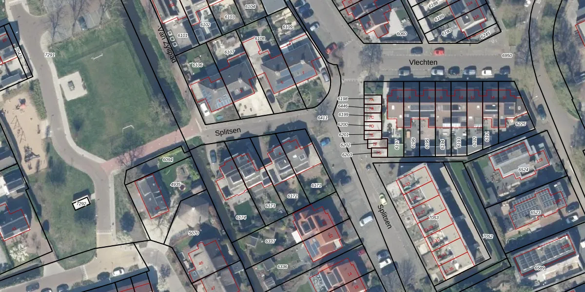 Splitsen 8 is gelegen op kadastraal perceel ODW00B6171. Deze kadastrale aanduiding is uniek en wordt gebruikt door het Kadaster om eigendomsrechten en andere zakelijke rechten vast te leggen. Het perceel maakt onderdeel uit van de kadastrale gemeente Oudewater.
