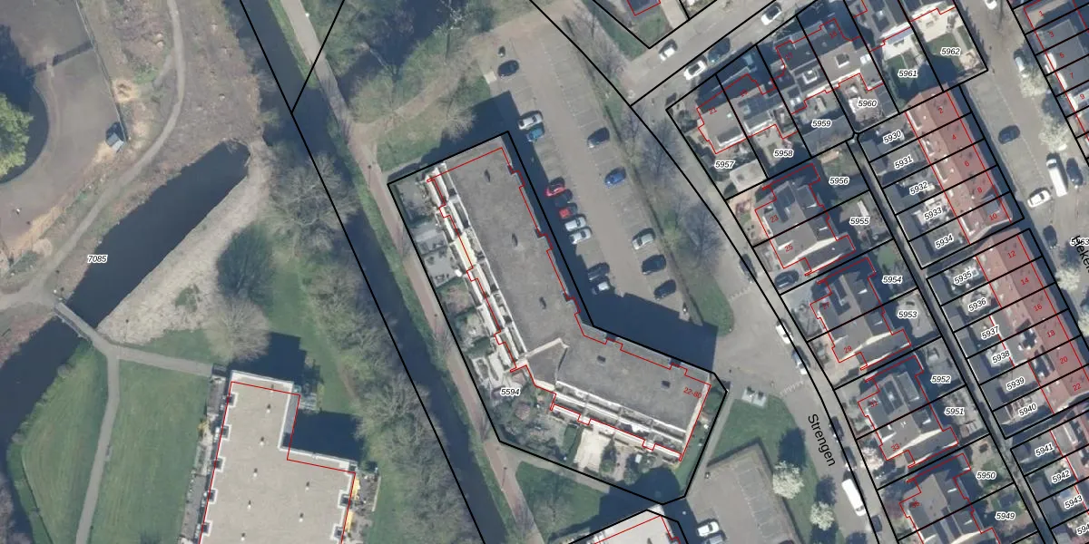 Strengen 42 is gelegen op kadastraal perceel ODW00B5594. Deze kadastrale aanduiding is uniek en wordt gebruikt door het Kadaster om eigendomsrechten en andere zakelijke rechten vast te leggen. Het perceel maakt onderdeel uit van de kadastrale gemeente Oudewater.