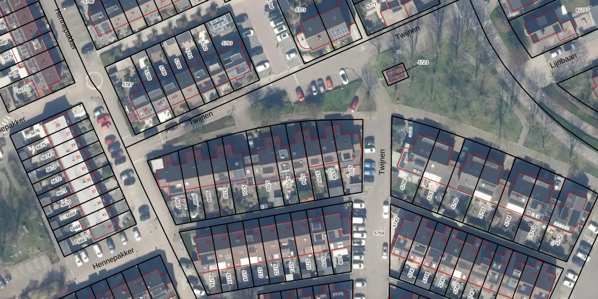 Het perceel waarop Twijnen 34 staat heeft een oppervlakte van 137 m². Dit is een middelgroot perceel. De perceeloppervlakte wordt geregistreerd door het Kadaster. Gedetailleerde informatie over de maten van dit perceel kunt u vinden in het rapport Kadastrale kaart met maatvoering van Twijnen 34.