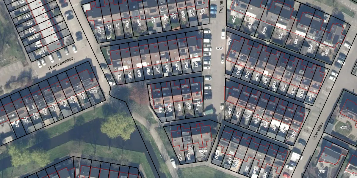 Gebruik de zoekbalk of klik op een perceel voor informatie over de adressen binnen dit perceel.