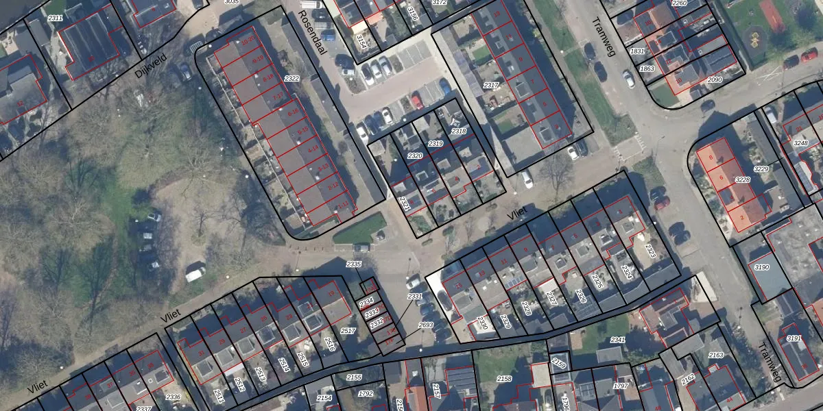 Het perceel waarop Vliet 8 staat heeft een oppervlakte van 159 m². Dit is een middelgroot perceel. De perceeloppervlakte wordt geregistreerd door het Kadaster. Gedetailleerde informatie over de maten van dit perceel kunt u vinden in het rapport Kadastrale kaart met maatvoering van Vliet 8.