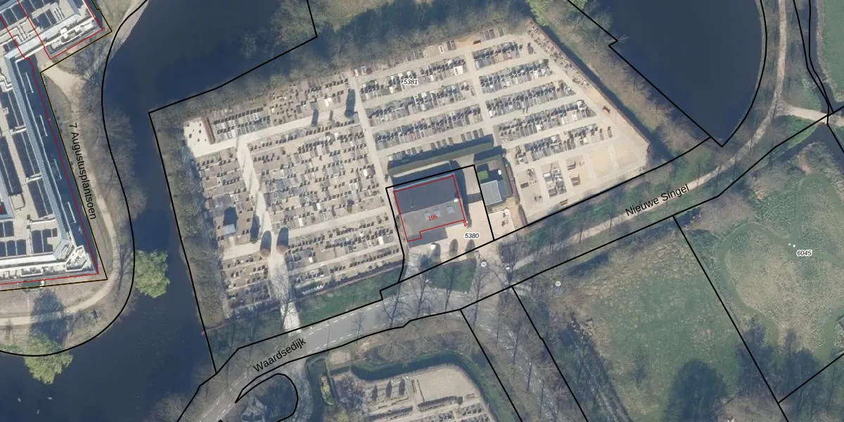Waardsedijk 106 is gelegen op kadastraal perceel ODW00B5380. Deze kadastrale aanduiding is uniek en wordt gebruikt door het Kadaster om eigendomsrechten en andere zakelijke rechten vast te leggen. Het perceel maakt onderdeel uit van de kadastrale gemeente Oudewater.