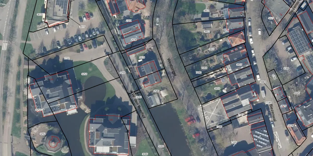Het perceel waarop Westsingel 1 staat heeft een oppervlakte van 430 m². Dit is een groot perceel. De perceeloppervlakte wordt geregistreerd door het Kadaster. Gedetailleerde informatie over de maten van dit perceel kunt u vinden in het rapport Kadastrale kaart met maatvoering van Westsingel 1.