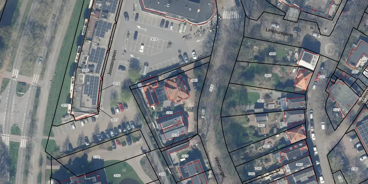 Het perceel waarop Westsingel 5 staat heeft een oppervlakte van 1120 m². Dit is een zeer groot perceel. De perceeloppervlakte wordt geregistreerd door het Kadaster. Gedetailleerde informatie over de maten van dit perceel kunt u vinden in het rapport Kadastrale kaart met maatvoering van Westsingel 5.