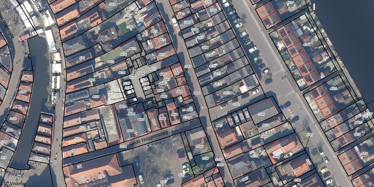 Het perceel waarop het adres ligt is ODW00-B-6689. De afkorting 'ODW00' staat voor kadastrale gemeente Oudewater. De gemiddelde perceelgrootte in Oudewater is 3639,7 m². Dit perceel is kleiner: de perceeloppervlakte bedraagt 108 m². Het grootste perceel in de kadastrale gemeente is 41,9 ha. Het kleinste perceel heeft een oppervlakte van 0 m². Dit is het enige adres dat aanwezig is op het perceel. De huidige grenzen van het perceel zijn digitaal in de Basisregistratie Kadaster (BRK) geregistreerd op 07-12-2005.