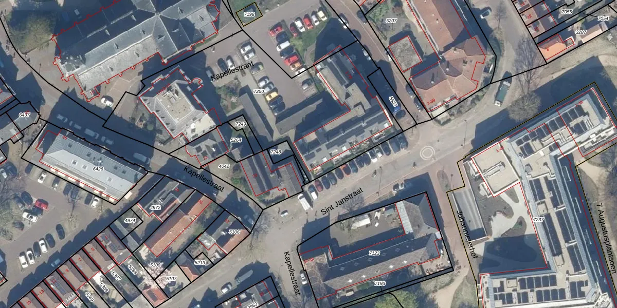 Het perceel waarop Wijngaardstraat 3-E staat heeft een oppervlakte van 2509 m². Dit is een zeer groot perceel. De perceeloppervlakte wordt geregistreerd door het Kadaster. Gedetailleerde informatie over de maten van dit perceel kunt u vinden in het rapport Kadastrale kaart met maatvoering van Wijngaardstraat 3-E.