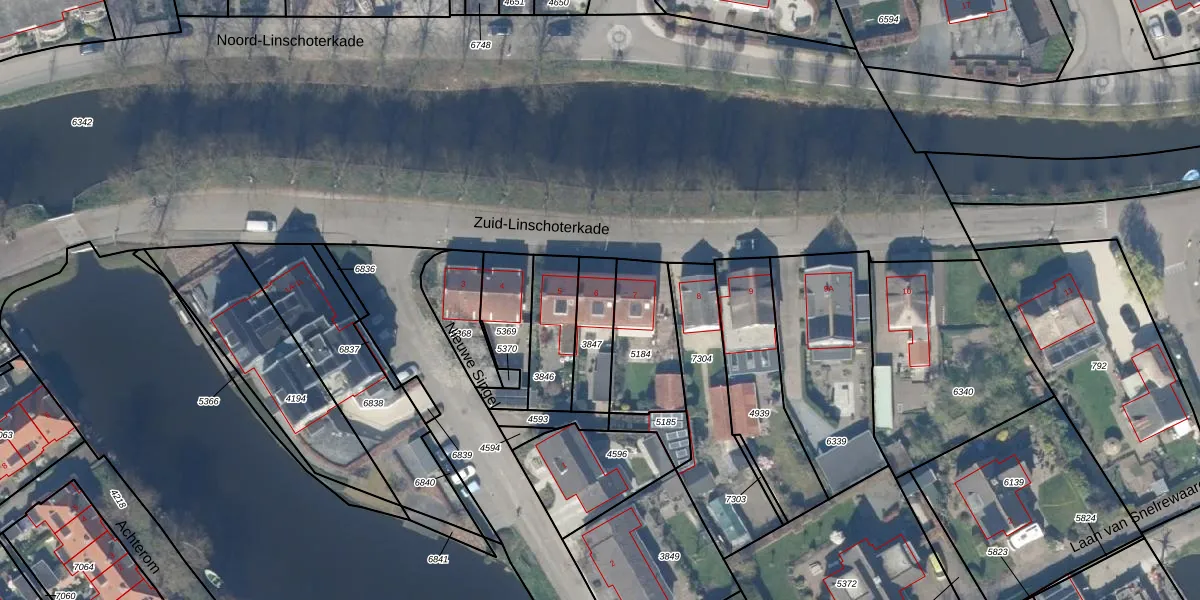 Zuid-Linschoterkade 6 is gelegen op kadastraal perceel ODW00B3847. Deze kadastrale aanduiding is uniek en wordt gebruikt door het Kadaster om eigendomsrechten en andere zakelijke rechten vast te leggen. Het perceel maakt onderdeel uit van de kadastrale gemeente Oudewater.