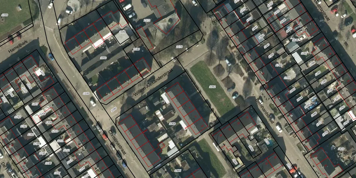 Het perceel waarop Bernhardstraat 2 staat heeft een oppervlakte van 1715 m². Dit is een zeer groot perceel. De perceeloppervlakte wordt geregistreerd door het Kadaster. Gedetailleerde informatie over de maten van dit perceel kunt u vinden in het rapport Kadastrale kaart met maatvoering van Bernhardstraat 2.
