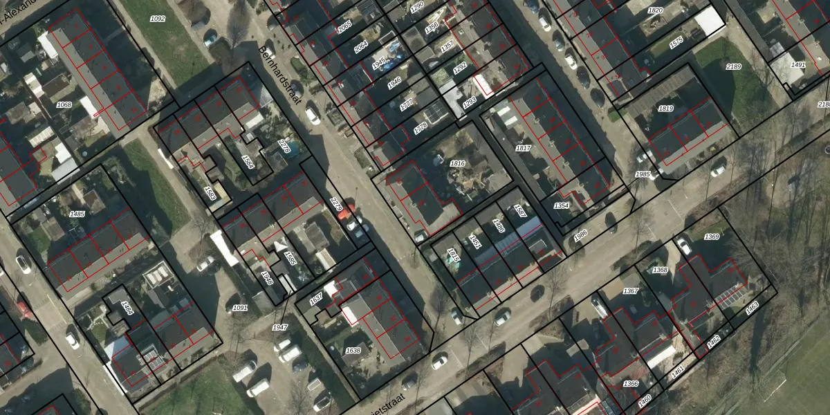 Het perceel waarop Bernhardstraat 33 staat heeft een oppervlakte van 553 m². Dit is een groot perceel. De perceeloppervlakte wordt geregistreerd door het Kadaster. Gedetailleerde informatie over de maten van dit perceel kunt u vinden in het rapport Kadastrale kaart met maatvoering van Bernhardstraat 33.