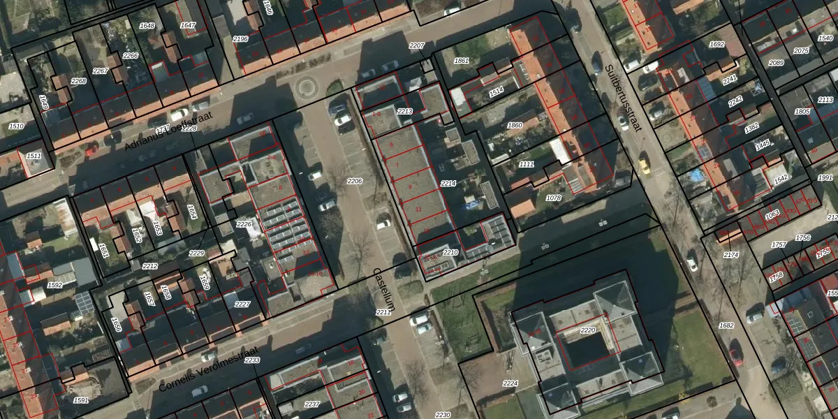 Het perceel waarop het adres ligt is HDN02-C-2214. De afkorting 'HDN02' staat voor kadastrale gemeente Heusden. De gemiddelde perceelgrootte in Heusden is 5639,77 m². Dit perceel is kleiner: de perceeloppervlakte bedraagt 762 m². Het grootste perceel in de kadastrale gemeente is 40,2 ha. Het kleinste perceel heeft een oppervlakte van 0 m². Op het perceel zijn 6 adressen aanwezig. De huidige grenzen van het perceel zijn digitaal in de Basisregistratie Kadaster (BRK) geregistreerd op 10-11-2010.