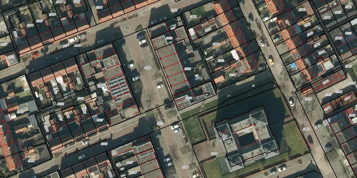 Het perceel waarop Castellum 13 staat heeft een oppervlakte van 762 m². Dit is een groot perceel. De perceeloppervlakte wordt geregistreerd door het Kadaster. Gedetailleerde informatie over de maten van dit perceel kunt u vinden in het rapport Kadastrale kaart met maatvoering van Castellum 13.