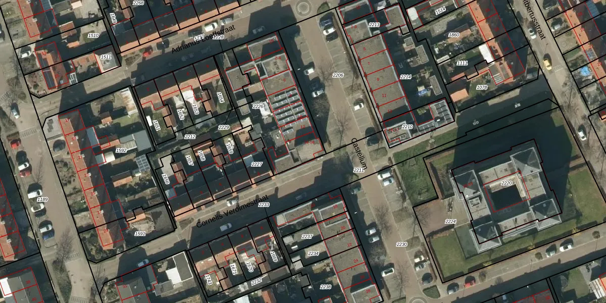 Het perceel waarop Castellum 16 staat heeft een oppervlakte van 810 m². Dit is een groot perceel. De perceeloppervlakte wordt geregistreerd door het Kadaster. Gedetailleerde informatie over de maten van dit perceel kunt u vinden in het rapport Kadastrale kaart met maatvoering van Castellum 16.